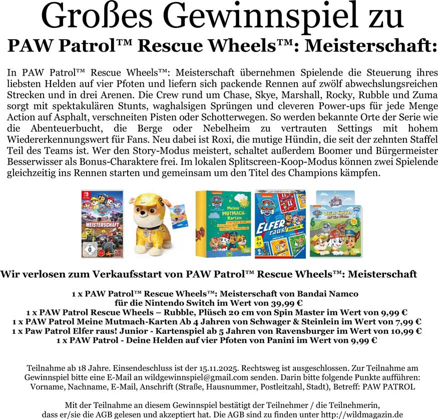„PAW Patrol Rescue Wheels: Meisterschaft“, das am 31. Oktober