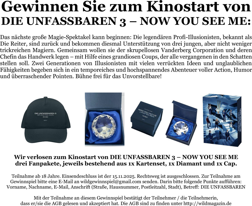am 13. November der dritte Teil der „Die Unfassbaren“-Reihe