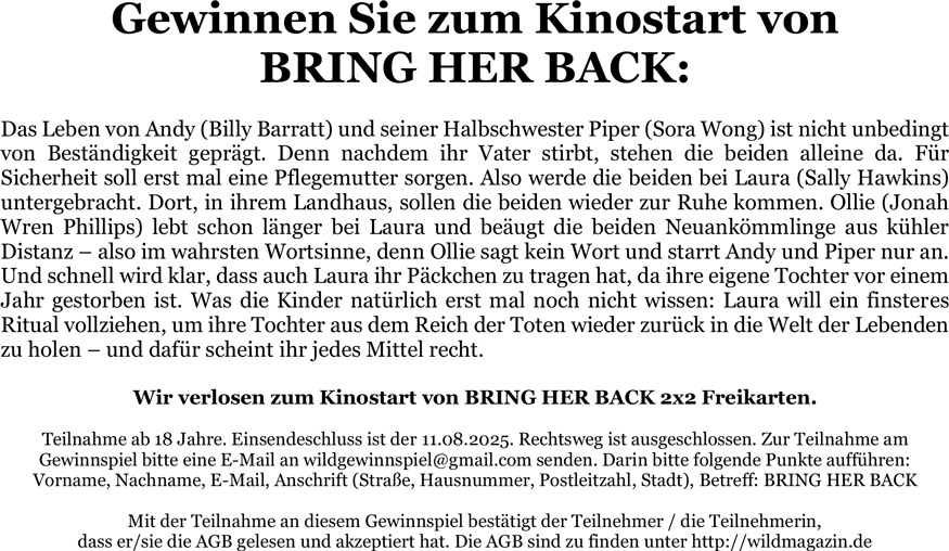 und unnachgiebige Düsternis auszeichnet. BRING HER BACK, der